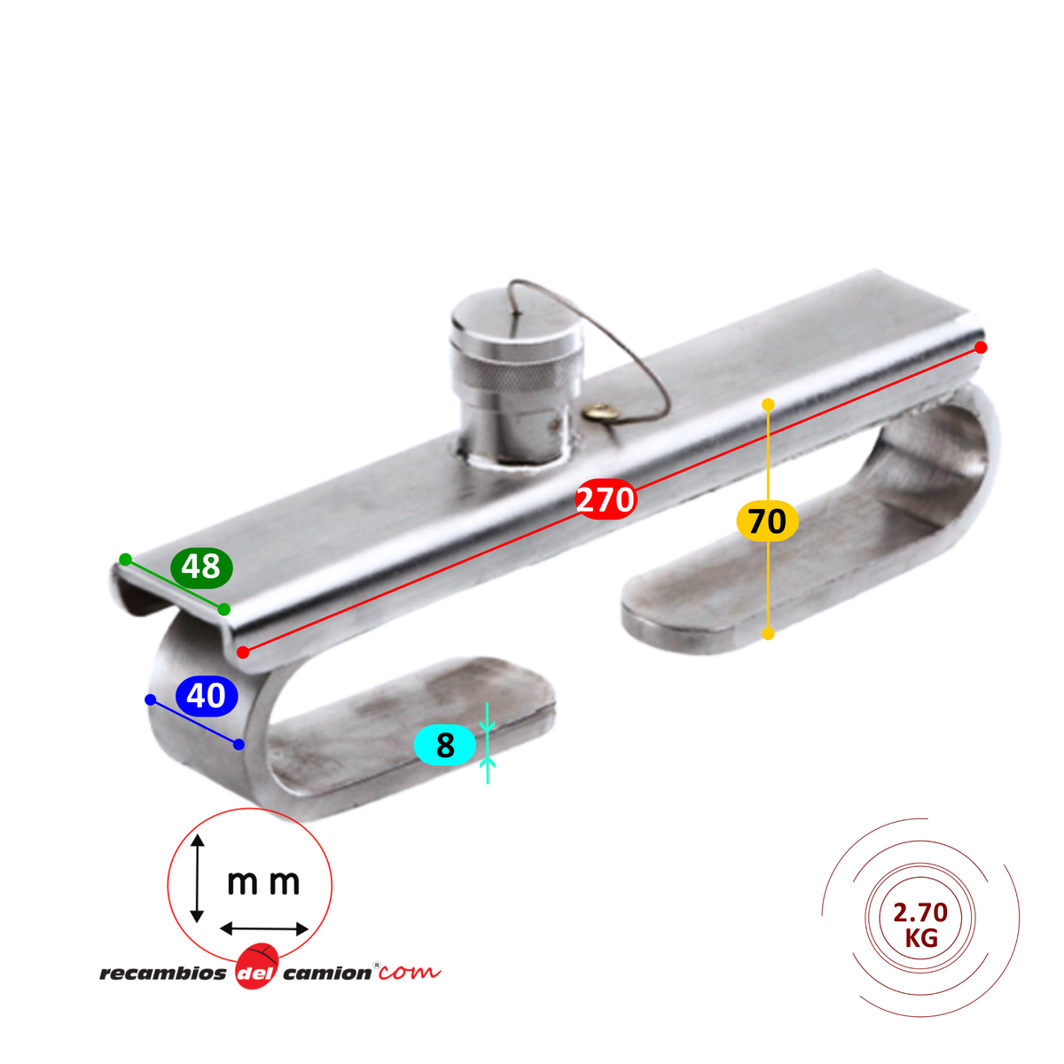 Cierre de seguridad está diseñado específicamente para brindar protección y seguridad en vehículos con puertas dobles traseras, con sistema de cierre exterior de falleba. Es una solución eficiente y duradera que no requiere instalación adicional. Aplicación: Camiones con puerta doble trasera, Semirremolques; Frigoríficos, Isotermos, TIR.